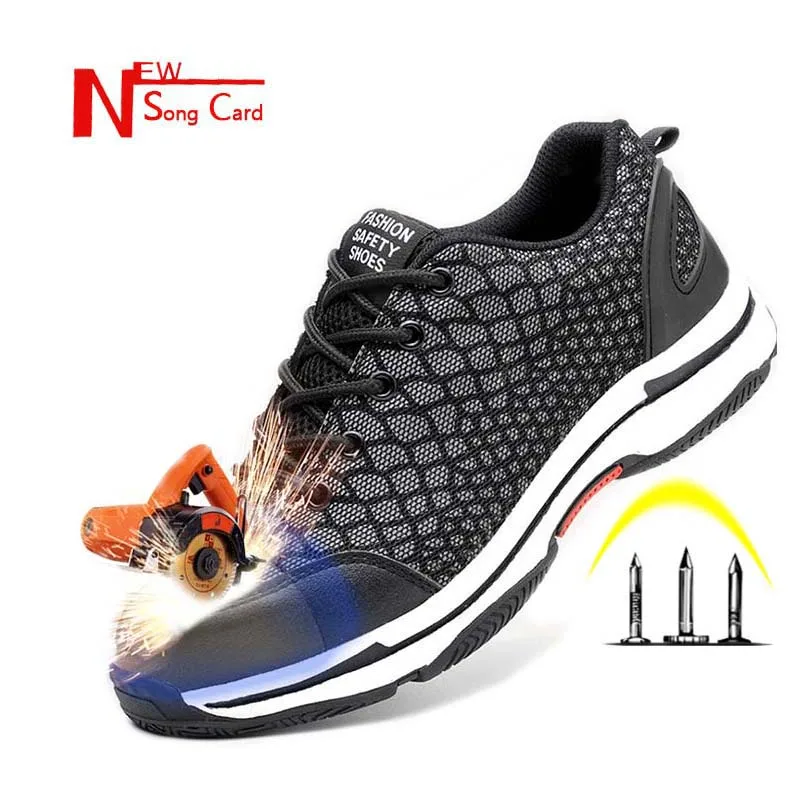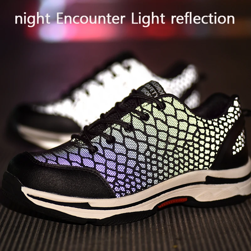 New song card Fashion Night Reflective Safety Shoes Male Breathable Anti-smashing Steel Toe Constru