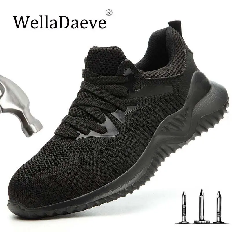 Men's Safety Work Shoes Lightweight Breathable Outdoor Sneakers Steel Toe Cap Ankle Boots Construct