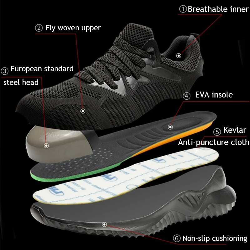 Breathable Steel Head Safety Shoes European Standard Steel Head Construction Work Safety Boots Non-